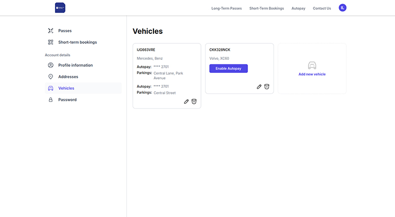 Reglas de pago flexibles: los conductores pueden establecer múltiples reglas de pago para diferentes vehículos, tarjetas y plazas de aparcamiento, lo que facilita la gestión de todas sus necesidades de aparcamiento en un solo lugar. Seguridad de los datos: los datos de las tarjetas se almacenan de forma segura con el Proveedor de Servicios de Pago (PSP), lo que garantiza el cumplimiento de la normativa de seguridad y las normas de protección de datos. Los conductores pueden vincular múltiples métodos de pago a su cuenta, lo que les facilita el pago, sea cual sea su opción de pago preferida.